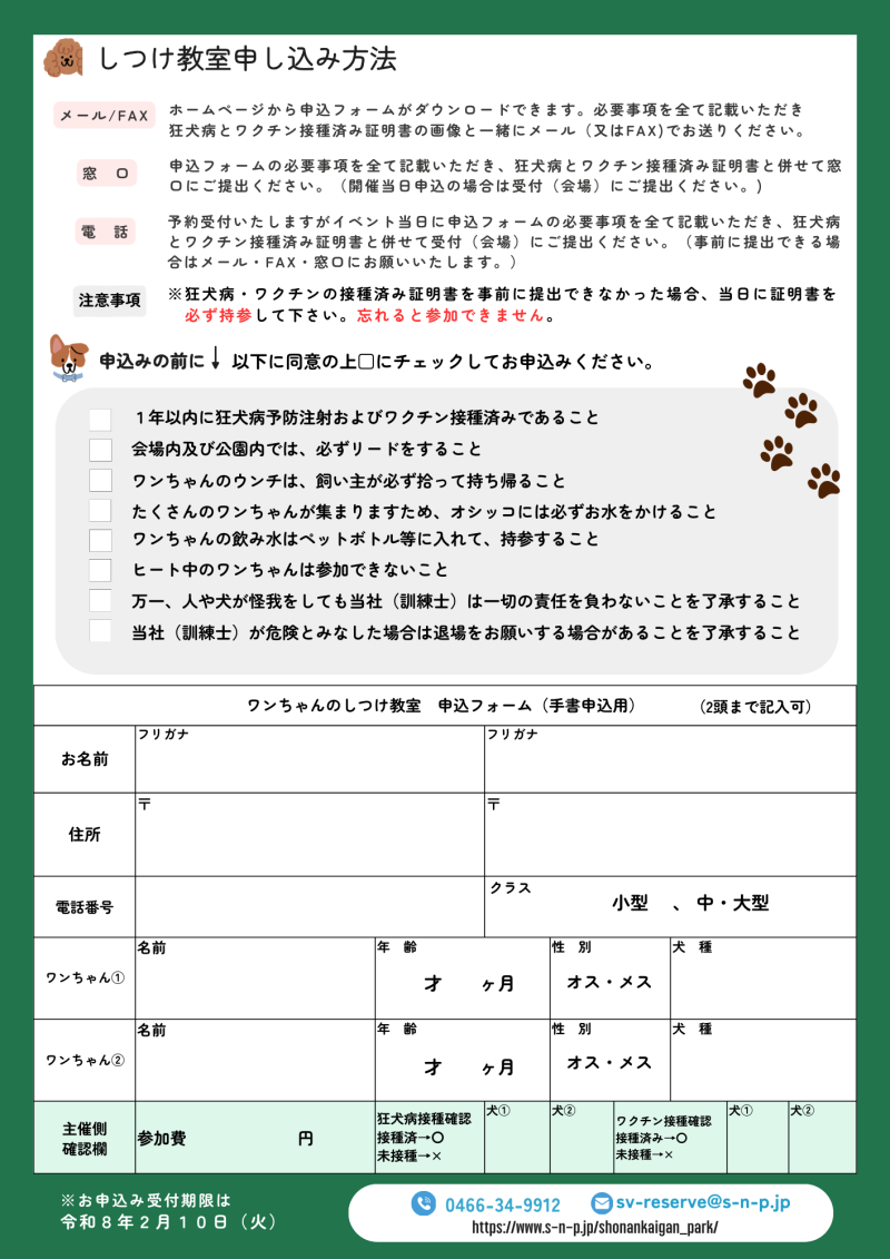 ※狂犬病、ワクチン接種済みのワンちゃんが参加対象となります。