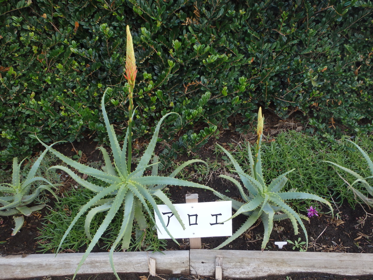 アロエの植えてある場所は、サーフビレッジ正面の「水の広場」になります。